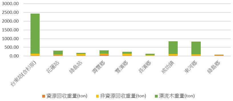 | 一般垃圾 ( 公噸 ) | 資源垃圾 ( 公噸 ) | 漂流木 ( 公噸 ) |