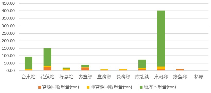 | 一般垃圾 ( 公噸 ) | 資源垃圾 ( 公噸 ) | 漂流木 ( 公噸 ) |