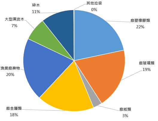 | 海岸廢棄物總重 ( 公噸 ) | 134.09 | |