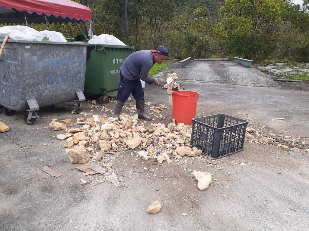 颱風、豪大雨過後或其他特殊情形,評估無法以人力清除,需使用大型機械清理之廢棄物即啟動緊急清,於 7 天內完成清潔。