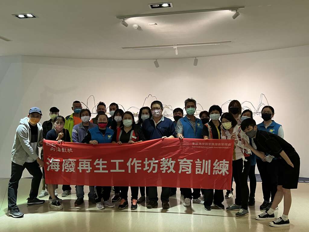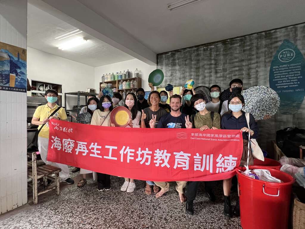 東管處表示為啟發民眾對於海岸廢棄物循環再利用,及了解海洋資源永續的重要,東管處於111年03月12、13日及4月12、13日,針對向海致敬清潔人員辦理海廢循環再利用的示範課程,共計6場次95位夥伴,課程內容包含三大重點:一、光‧再生展覽,由藝術家林俊德及高惟維共同創作,擅長老屋改造及燈光營造,海洋廢棄物經過藝術家的巧手及巧思變化成一件件獨一無二的藝術品,體現廢棄物再利用的生命力。二、塑膠再生循環,由臺灣德福工作室於東海岸撿拾垃圾後進行分類並加工製成生態磚、杯墊、收納袋等再製品。三、海洋廢棄物一起動手做,利用海邊撿拾到的廢棄漁網製成不同造型的手環。藉由課程啟發大家對海洋廢棄物再利用的想法,進而達到資源永續循環;同時課程期間皆使用非一次性餐盒、餐具,貫徹源頭減量的目標。
