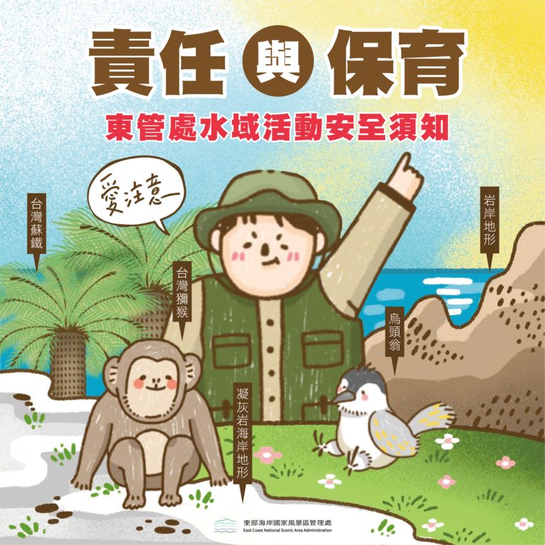 東部海岸國家風景區管理處(以下簡稱東管處)為配合3月19-25日的「旅遊安全宣導週」,並貼心考量轄內各遊憩景區多為礁岩地形,以及近年露營、水域遊憩活動(如:潛水、獨木舟、SUP等)及戶外遊憩活動日益興盛,將透過網站媒體、地方電台廣播劇及辦理熱門旅遊據點安全宣導展,讓遊客到訪東海岸前,能預先與及時獲得出遊之安全叮嚀與提醒注意事項。