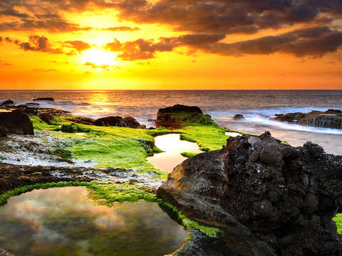 The huge, twisted coral reefs, along with the fig trees growing on the rocks, form a unique sight. On a clear day, from Fugang Geopark (Xiaoyeliu) you can see clearly Lüdao about 32 kilometers towards the east as well as ferries departing from Fugang Fishing Port for Lüdao and Lanyu.