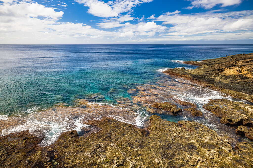 Turtle Bay, Horseshoe Bridge, and are neighboring attractions on Green Island's southwest coast. Turtle Bay is a wide and flat coral reef bay. Starting from Turtle Bay Nose (the protruding bit), a whole stretch of inward-curved coast can be found here. As the water in the bay is calm, it is not only a good fishing ground, but also a popular diving spot blessed with rich ecological resources. At the depth of 15-30 meters, clusters of Junceella fragilis corals and sea turtles can be found.
