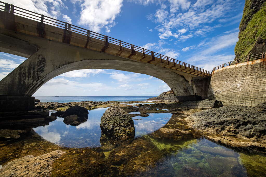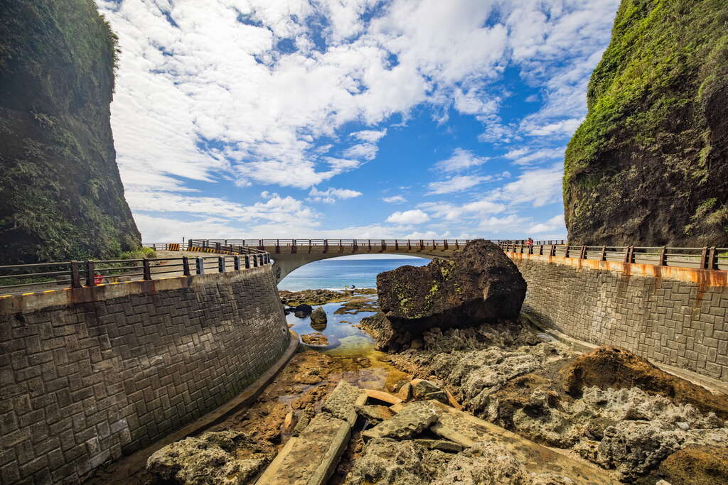 Horseshoe Bridge is a man-made bridge that one must pass through at Turtle Bay when travelling on the round-island highway. Cutting the road straight that was originally built along the inward-bending mountain wall, a new bridge crossing the Pacific Ocean was built. The inward bend is what gave it the name, Horseshoe Bridge. The East Coast National Scenic Area Headquarters planned a walkway along the bend under Horseshoe Bridge. Visitors are recommended to check it out on a good day to take a closer look at the giant rocks and seashore. Standing on Horseshoe Bridge, you can enjoy the magnificent Pacific Ocean waves and the surrounding coastal landforms. However, during the northeast monsoon and typhoon season, splashing waves can come up onto the bridge. Visitors must pay special attention to the weather and sea state, and watch out for your own safety.