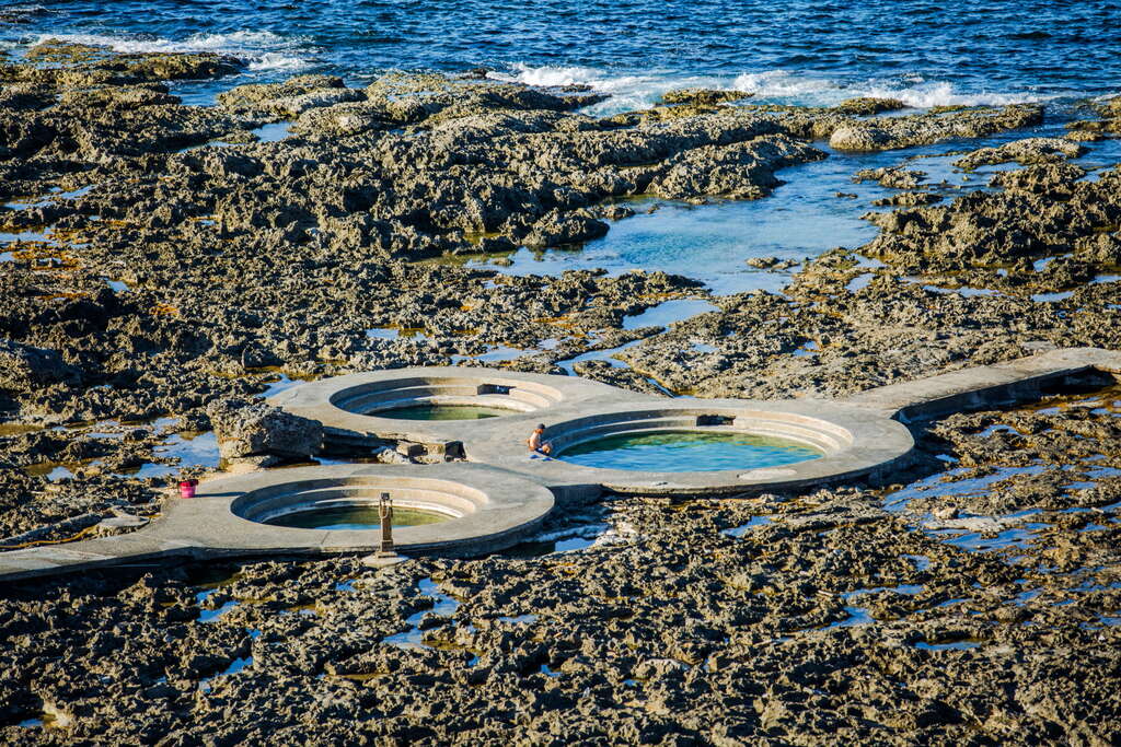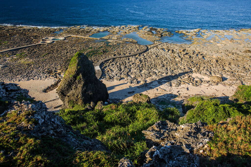 朝日温泉は緑島東南の潮間帯上にあって、日本時代は"旭温泉"と呼ばれていました。泉質は透明で、温度は約60-70度、やや酸性の硫酸塩泉ですが、まったく硫黄の匂いはせず、湯からあがると肌がすべすべします。