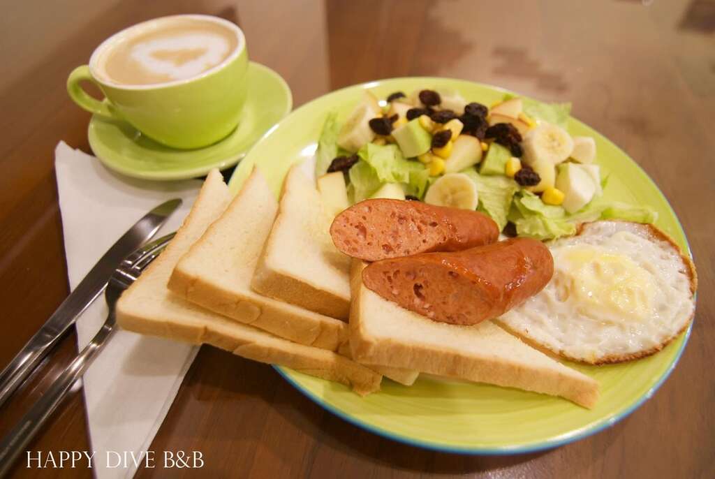 另外愛料理的民宿主人,將為每位入住的賓客準備營養.活力的早餐;並提供南洋風味的美食料理,供賓客們預約享用~健康均衡的餐點設計也是訴求之一.潛水運動在綠島可說是重頭戲,在這想拿國際潛水執照也沒問題!喜愛潛水的民宿男.女主人皆是認證的潛水教練,並擁有專業的潛水團隊.躍入清澈的大海浬自在悠游,想像自己是條美人魚,與可愛迷人的彩魚共舞和海龜玩捉迷藏,並有五顏六色的珊瑚可欣賞;就讓我們無拘無束地擁抱這片美麗的海洋去~~~~~~