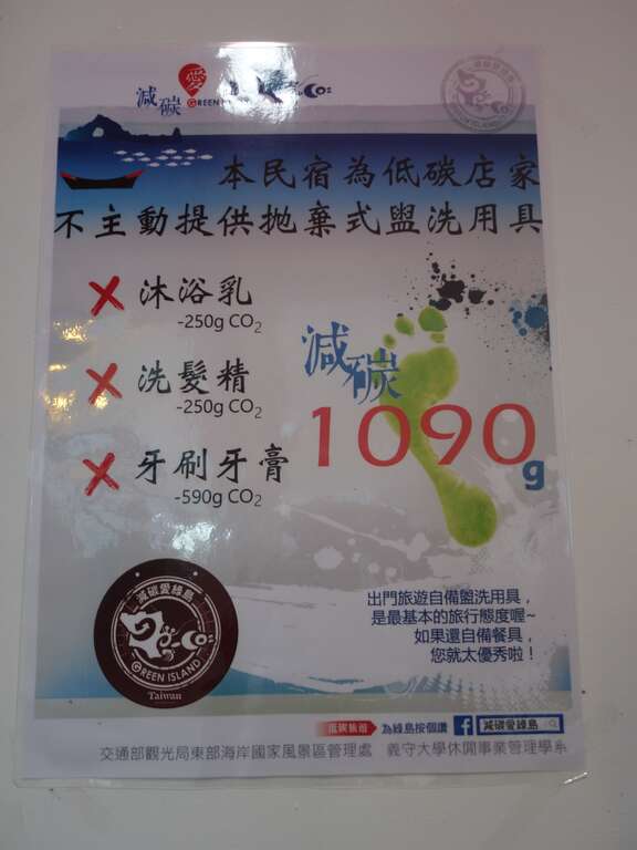 「綠海城堡民宿」位於綠島中寮村,為綠島低碳遊程中「減碳愛綠島」的民宿之一,不提供一次性的盥洗用具,並做好完善的垃圾分類。