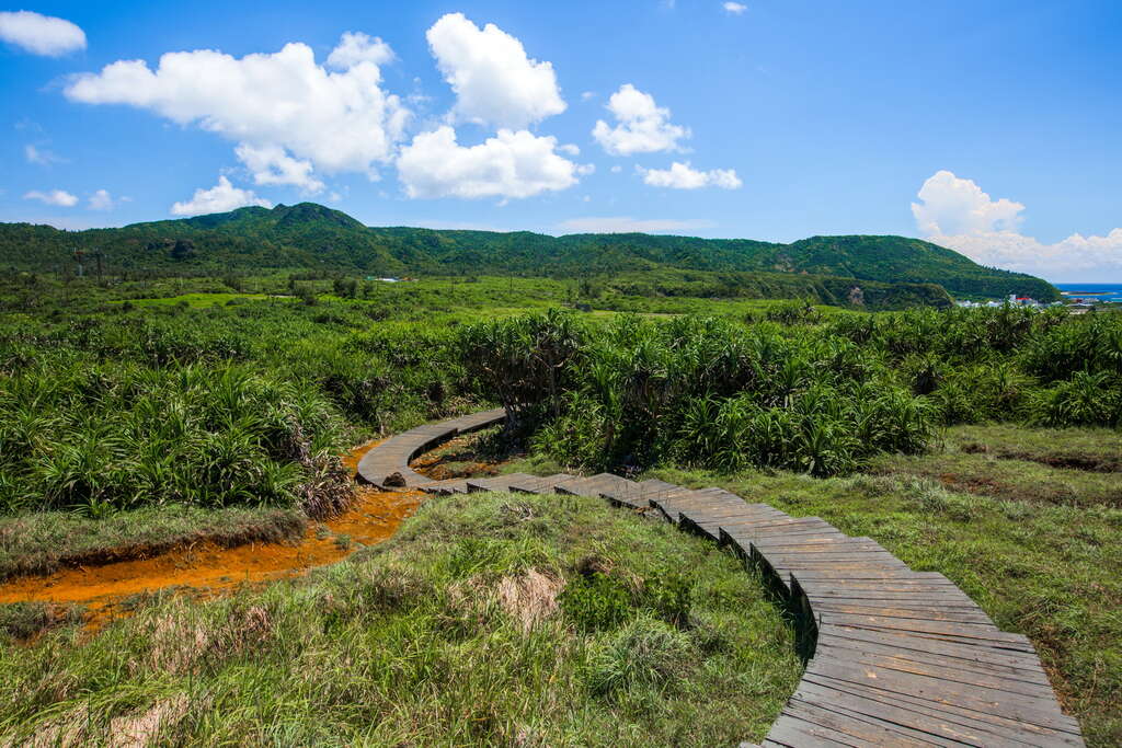 綠島東北方海岬的牛頭山是綠島地標,牠靜靜地趴臥在東北岬,守望著綠島以及每位到來的旅客。從南寮漁港往北走,沿途經過綠島遊客中心、柴口、綠洲山莊等景點,就可抵達牛頭山。