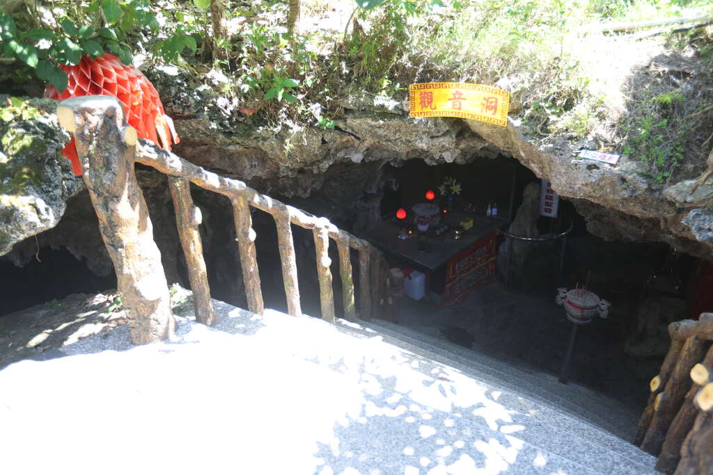 綠島的觀音洞,位於公館村的海階平台上,島民稱作草山,是一個天然的鐘乳石洞;洞府階前立著一副對聯「綠水青山觀音勝地,島上風光神仙洞府」;洞內矗立一座石筍,形態似觀世音菩薩,朝聖者日益漸增、香火鼎盛。