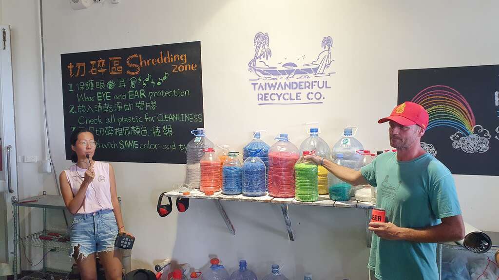 東管處處長林維玲表示綠島擁有豐富海洋遊憩資源,每年吸引近30萬人到訪,也帶來可觀垃圾量。離島垃圾去化不易,不論一般垃圾或寶特瓶、塑膠餐盒等可回收資源均需運回本島,增加再利用門檻,降低業者處理意願。東管處今(112)年以位於朝日旅服的洄塑工作站為中心,配合綠島國中、綠島國小、公館國小、朝日溫泉、綠島遊客中心等5處社區收集站,同時號召當地環境友善店家,推廣並進行塑膠容器清潔回收工作,將處理乾淨且完成分類之塑膠容器粉碎成塑膠粒,再製成生活物品、藝術品或紀念品,達到島內循環之減塑目標。