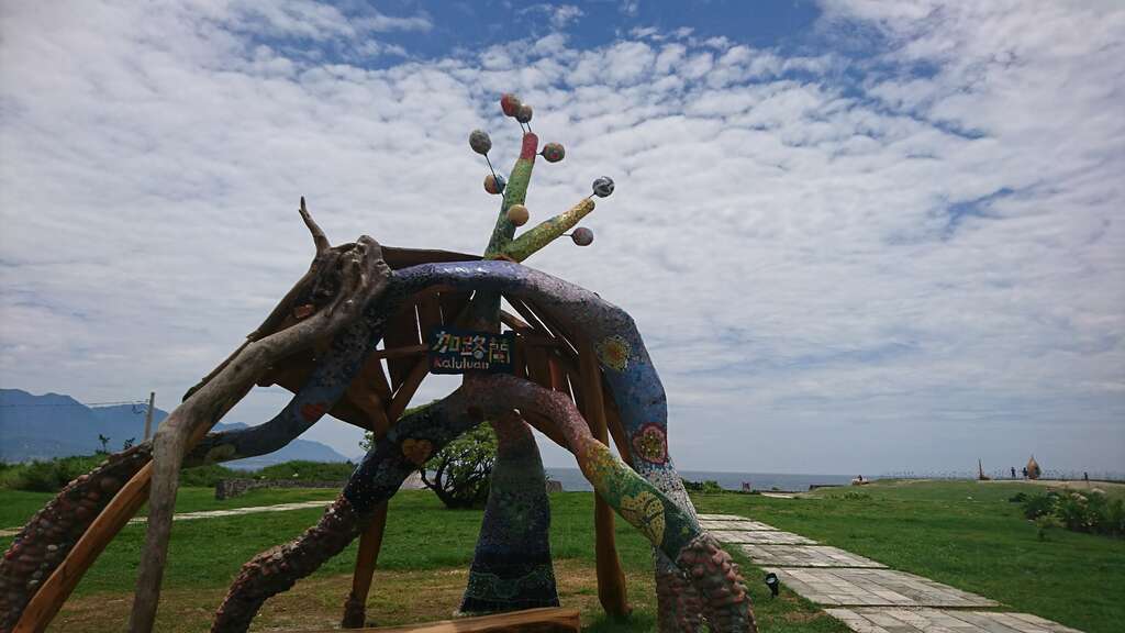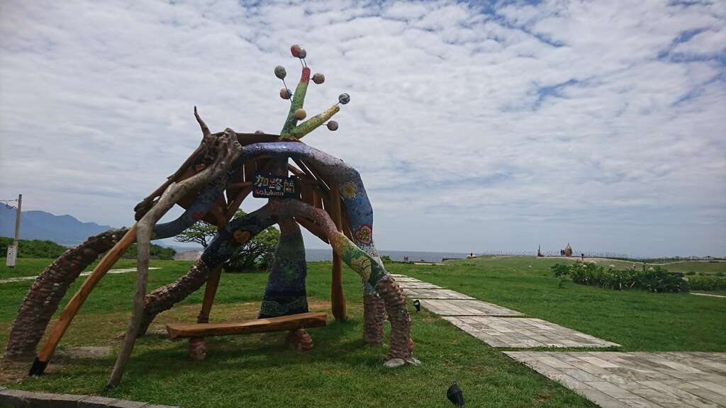 Jialulan, an empty seaside prairie overlooking the magnificent scenery of the distant coastal mountains descending into Dulan Bay. Because the stream north of it is rich in minerals, according to local Amis, washing hair in the stream will keep one’s hair silky black, so it was named “Black Hair Creek, Kararuan” in Amis (literally meaning hair washing spot) which later became “Jialulan.” Down at the southmost entrance of the East Coast Corridor, the scenery is extremely beautiful; however, the strong wind makes it difficult for vegetation to thrive. The summer is often scorchingly without any shades, so the artist has specially designed this work to bloom under the sun, accompanying travelers to breathe the fragrance of the land as well as to be nurtured by all the weather elements the four seasons have to offer.