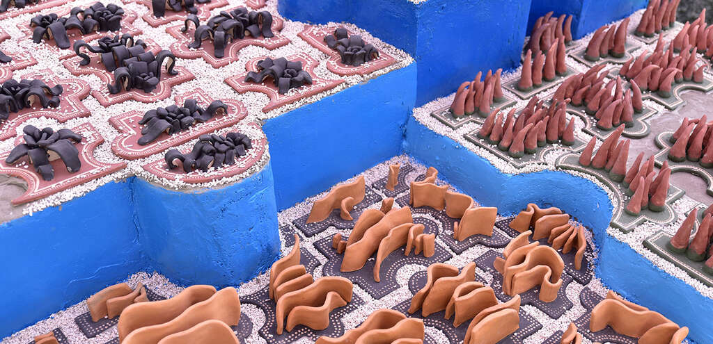 藝術家身為離鄉背井在都市長大的阿美族人,雖然因為父母必須北上討生活,東海岸的家鄉只是一年三節返鄉的短暫回憶,但即便生活在台北城的邊緣,一到假日阿美族人還是一定要全家到海邊聚會,男人下海打魚,女人在潮間帶採集,然後就地在岸邊煮成新鮮甜美的佳餚,親族好友共同享用的同時,也一起唱著家鄉的歌謠。從小對「東海岸」/「家」的記憶就是和家人、族人團聚時,各種從礁岩孔洞中探出生命的潮間帶生物,變成了豐盛佳餚的繽紛色彩與鮮美滋味,這些「好吃」的色彩與味道就像一片一片拼圖一樣,拼湊出一個當代阿美族女孩的文化生活記憶。