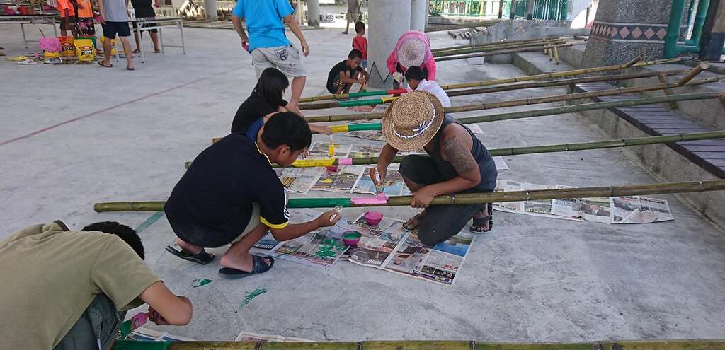 "以竹子作為主要媒材,除了呼應地名和環境的特質,亦將在地生活中經常使用的素材,轉化為有趣的環境裝置,招喚部落居民的認同一起創作。南竹湖部落內散置著許多小巧的閒置空間,是部落多年用心營造的文化導覽動線,藝術家以竹子上的飛魚、鳥和螃蟹造型的風動裝置,林立在這些角落,導引進入南竹湖的旅人,隨著海風吹動裝置發出的風之歌,踏訪這個美麗的部落。