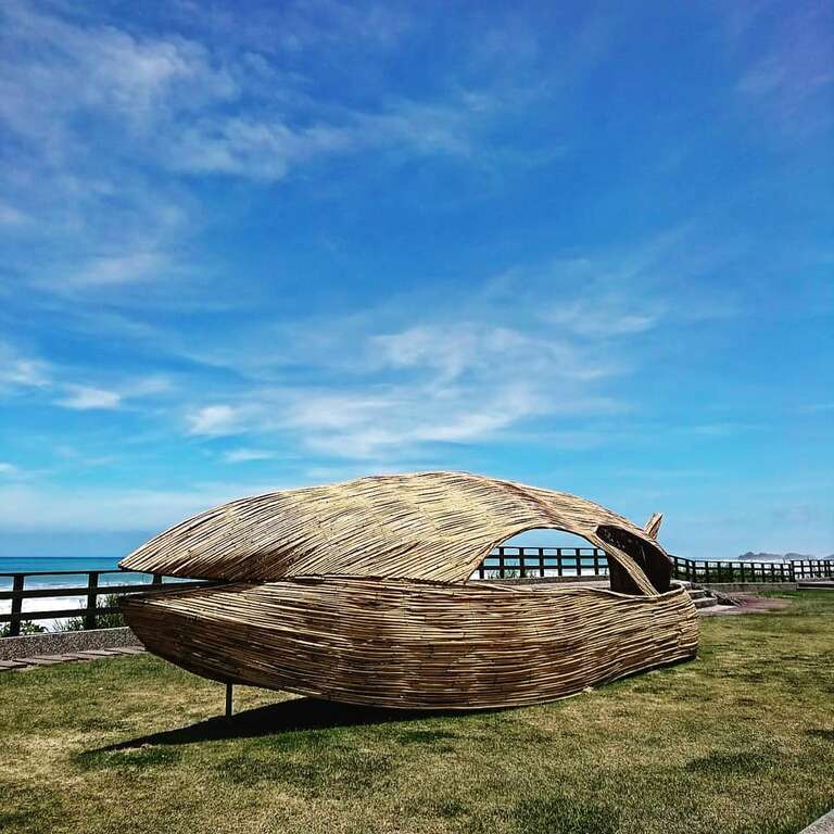 簡介 材質:鋼鐵、竹、木 他的眼裡只有海 當天空的眼睛 被金亮黃橙的光束 透亮無蹤 他的眼睛裝滿大海 靜靜地看著 還在呼吸的浪潮 太平洋的風 輕輕撫過他 太陽親吻的肌膚 他聽見海的信息 在藍色的海底 歸箭似心 巨大的魚身仿如竹筏交織著魚網 連同 身體與靈魂 你可以不必成為一條魚 只要靜靜感受 放在那邊的海 呼吸著還在呼吸的海 透過海洋民族眼中的海、身體與呼吸,可以感受海洋的情緒、潮汐、日夜轉換還有季節的變化,以及一個民族如何圍繞著海洋孕育出他們的文化。 藝術家 峨冷.魯魯安(安聖惠) 創作地點 臺東縣臺東市寧埔遊憩區Ningpu Park 相關照片