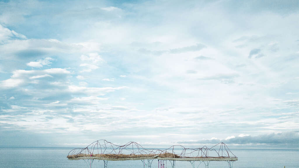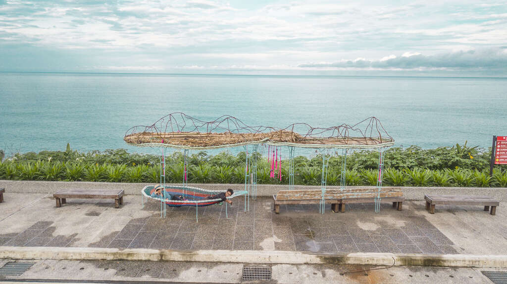 材質:鐵、海洋回收廢棄物、竹子、彈性繩、漂流木