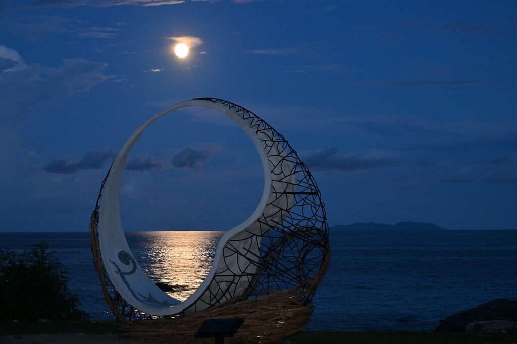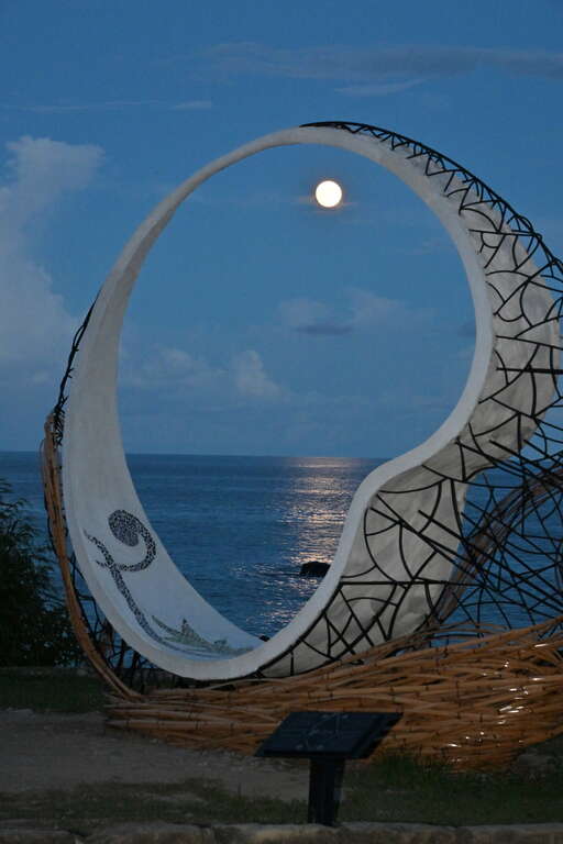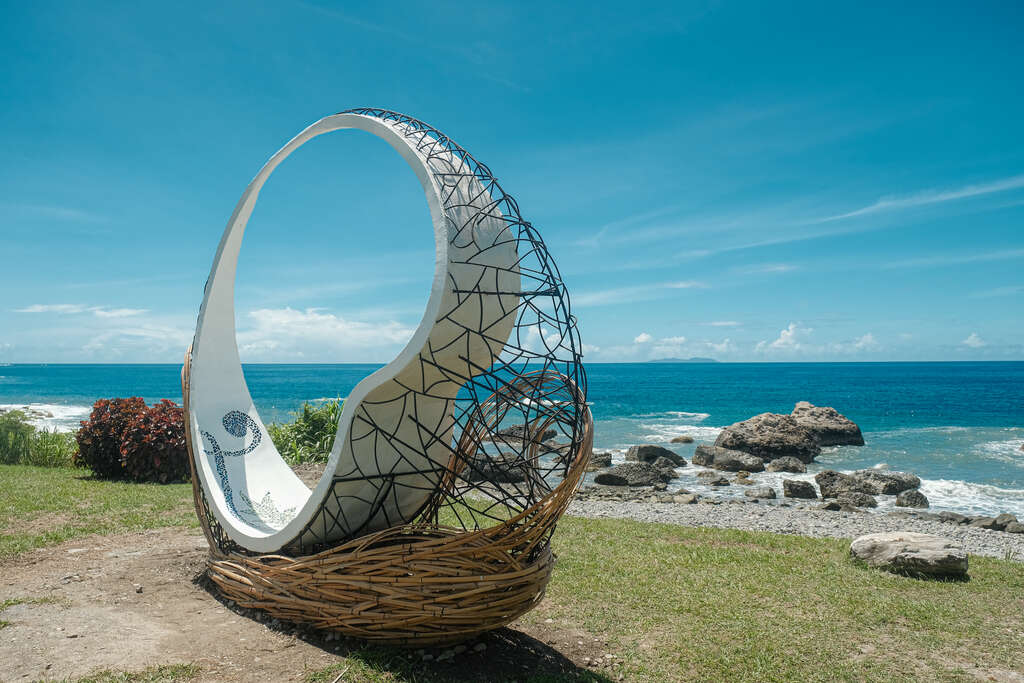簡介 《我在月光海 我很勇敢》 作品材質:竹子、鋼筋、水泥拼貼馬賽克 「陪你一起看山有多高, 海有多深,我們多勇敢。 沒有人是座孤島,大海大山將我們相連」 獻給母親台灣 ~ 以鋼筋作為結構及塑形,竹子作為包覆,圓型線條流線完全融入大山大海,不管任何角度都可融入山海,中間不規則圓形白水泥基座在磁磚馬賽克拼貼增加活潑色彩也易保留,重點可供遊客駐留片刻。人一直是大自然的一部分,感受在母親的懷抱,沒有人是座孤島,大山、大海將我們相連~ 藝術家 哈拿‧葛琉 創作地點 臺東縣臺東市渚橋遊憩區 相關照片