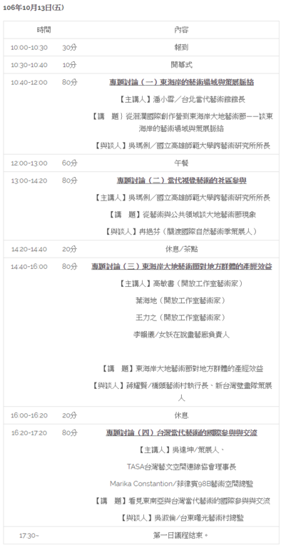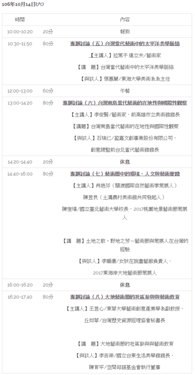 2017年10月13~14日(星期五~六)東海岸大地藝術節學術研討會