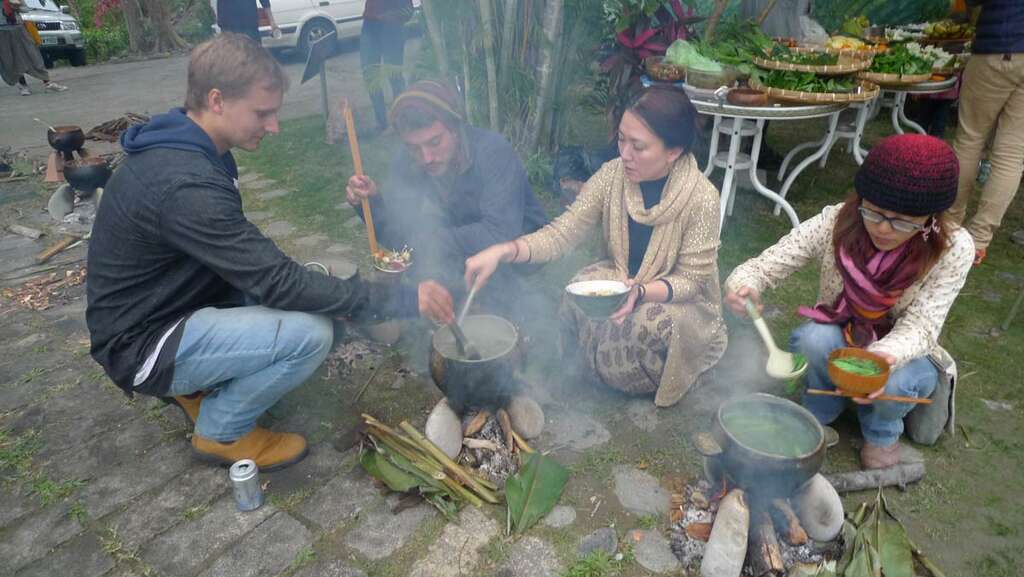 「Patawsi八道喜」野食廚房。東海岸的生態環境豐富,在千百年來與大自然密切的互動下,這裡的鄉親發展了根植於大自然的野外採集文化。鄉親生活所運用採集的野菜就超過兩百種以上,生活中所能取得的各式自然食材也非常充足。一天的勞動採集之後,總免不了吃吃喝喝慰勞分享。阿美族語「Patawsi」是親朋好友相聚歡樂之意,在現代社會對於食品安全多所疑慮之下,我們希望構造歡樂的氛圍,透過「Patawsi」野食廚房以及食材裝置,表達東海岸特有的以採集漁獵、分享為核心的的野食文化與在地農業的豐盛滋養。
