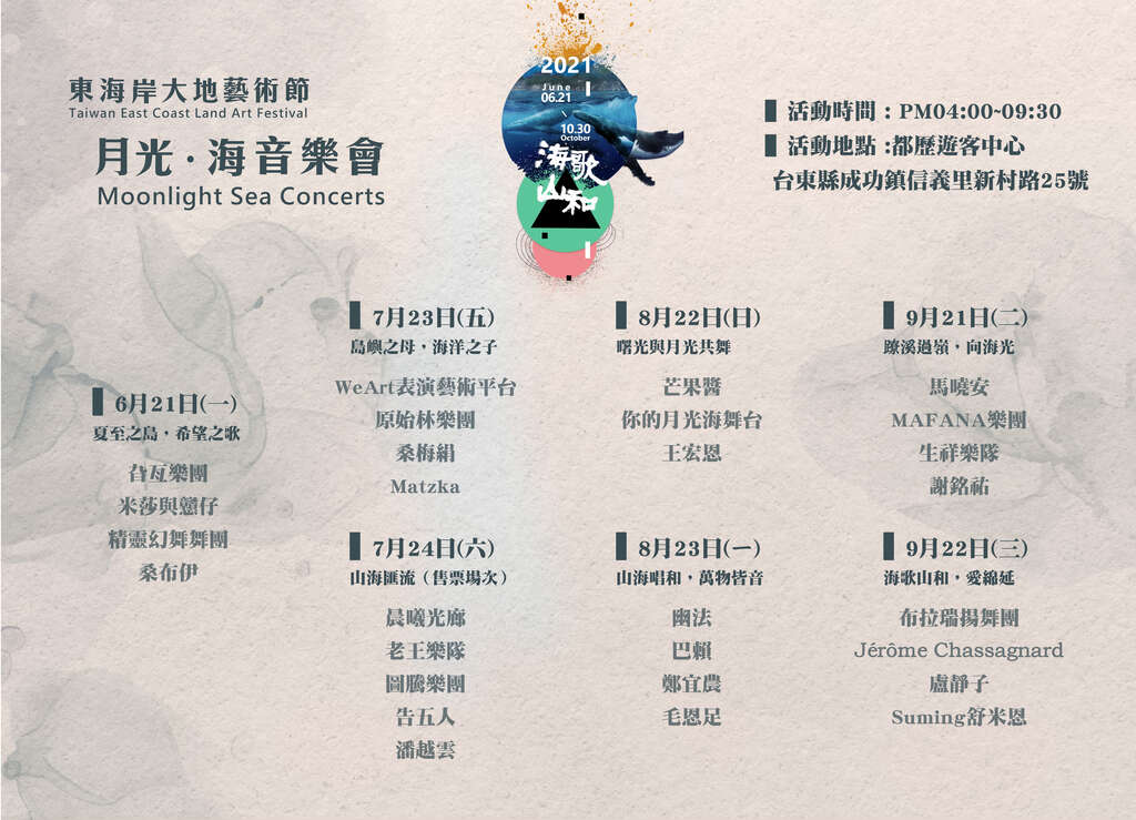 2021月光.海音樂會「海歌山和」場次日期與表演名單