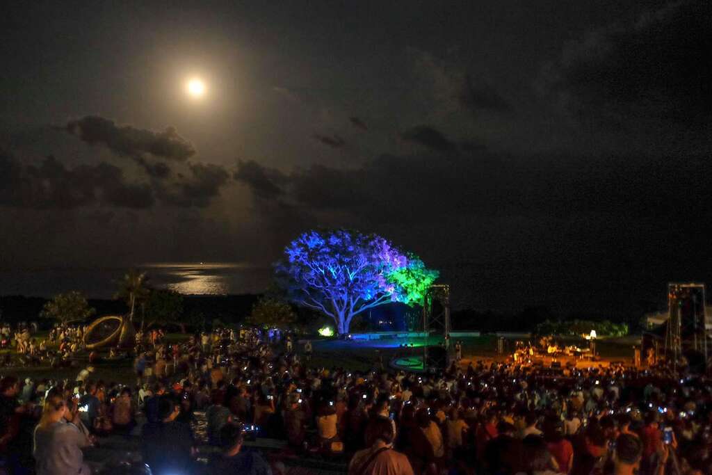 「月光•海音樂會」主要以自然景觀做為舞台背景,藉由月升日落浪起潮退等自然現象的動態展演,具體而微隱喻了大地藝術節想要表達的閒暇哲學與東海岸生活的美學風格。