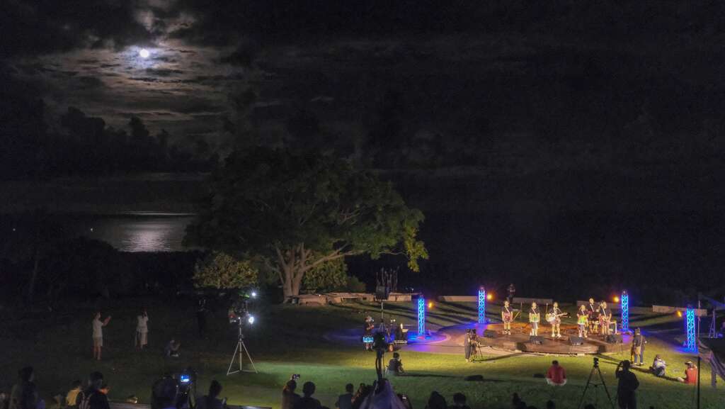 晚間6點50分音樂會直播開始,此時月亮也正緩緩從海平面升起。金色月光映照在海面上,燦爛奪目閃閃動人,引起在場觀眾讚嘆聲不絕,紛紛拿起相機、手機補捉這東海岸絕美的畫面。音樂會由東海岸知名網紅,同時為布拉瑞揚舞團首席舞者Ponay擔綱主持,他以一貫的原式cover幽默為開場帶來無限歡樂。接續由都蘭部落、阿米斯音樂節創辦人舒米恩,以疫情期間的生活感受及傳統部落曲風,帶來一系列尚未發表的全新創作,讓現場及線上觀眾驚喜連連,大呼過癮。最後壓軸由本年金曲大贏家桑布伊為今晚音樂會帶來高潮,桑布伊獨特吟唱的嗓音彷彿隱藏著古老的靈魂,讓人不禁會毛球聳立屏氣聆聽,他特別以今年入圍金曲獎的年度歌曲「擁抱」來為世界祈福,也希望大家在疫情期間也能互相支持共度難關。