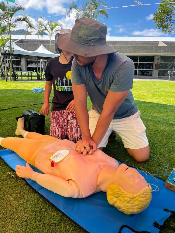 東海岸大地藝術節將於今(113)年6月21日隆重登場,連續4個月的月光‧海音樂會,讓大家在夏日享受不一樣的夏夜晚風及精彩的音樂饗宴,也因此每場次的音樂會皆吸引數千位民眾齊聚都歷遊客中心,如何確保大型群眾活動的安全與危機應變能力將是活動順利極為重要的一環;因此,交通部觀光署東部海岸國家風景區管理處於今(19)日在都歷遊客中心前草皮辦理大型活動前安全模擬演練,希望讓遊客可以安全的沉浸在月光海樂章中。