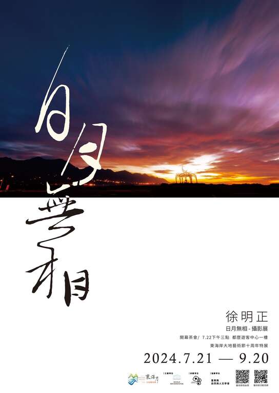 「日月無相的無不是沒有,而是指無限。這次展出的作品,不是拍我眼睛所見,是拍我心所感受。」展出者徐明正說。在台東縣各地拍攝了40餘年,徐明正對東海岸的一草一木一石一景都瞭若指掌,作品以數十萬張計,但這次的展出,卻僅是從近三年作品中精挑細選的30禎,可謂是精品中的精品。