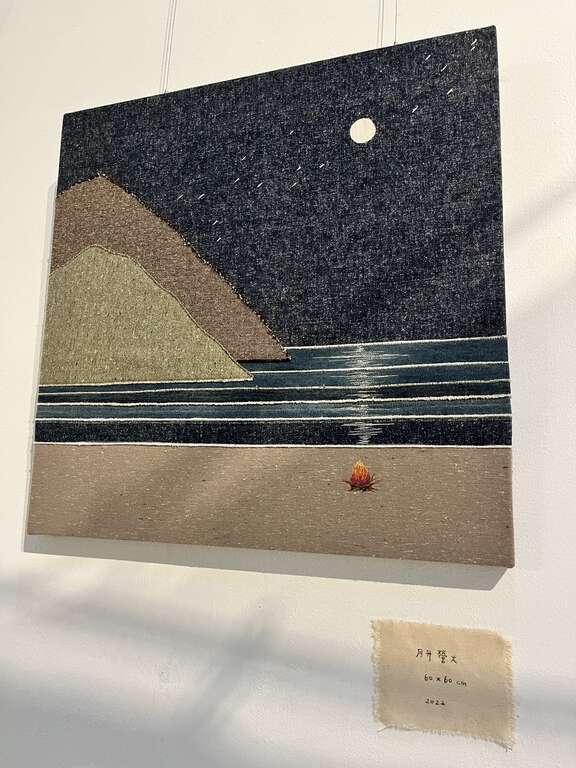 聽聽利用布不同的質感與顏色堆疊出遠近層次,車縫線條勾勒光影流動的節奏,分享在這片土地上純粹的感動,將稍縱即逝且深刻的瞬間以一幅幅布畫呈現,雖然稍縱即逝,但心裡的感動是永恆的,傳達在東部的生活感受到來自大地裡滿滿的愛。