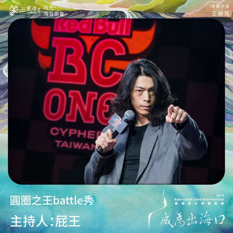 這次,由林群哲作為battle秀製作人,兩大屢獲獎項的舞團,零捌玖Unity將迎來原民嬌娃的挑戰,在月光海舞台來一場正式的battle,再加上主持人屁王、饒舌歌手HiJay、DJ Pop Wan,在山海之間的大地舞台,在眾星拱月之下,決定出誰是圓圈之王!