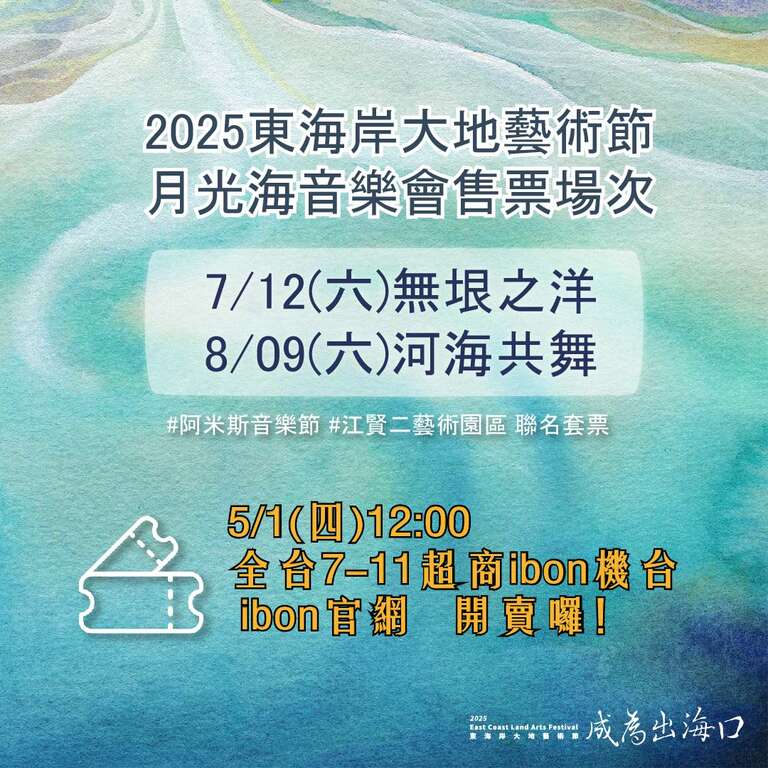 售票時間:2025/05/01 (四) 12:00起ibon售票系統機台及網站同步開賣