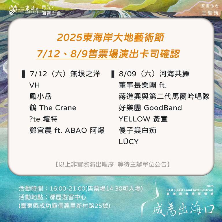 ● 2025年8月9日(六),場次名稱:河海共舞 ➡️購票連結