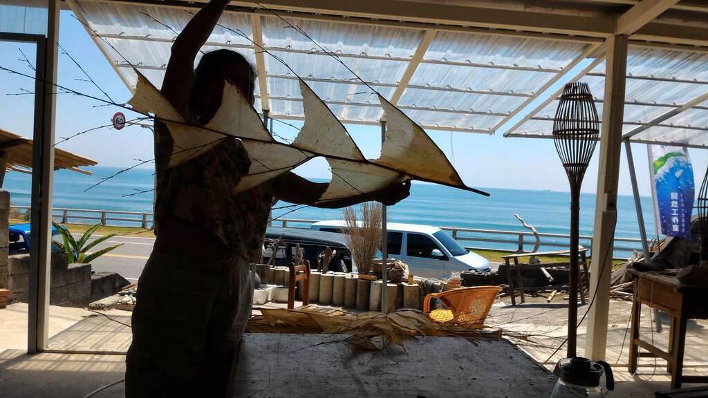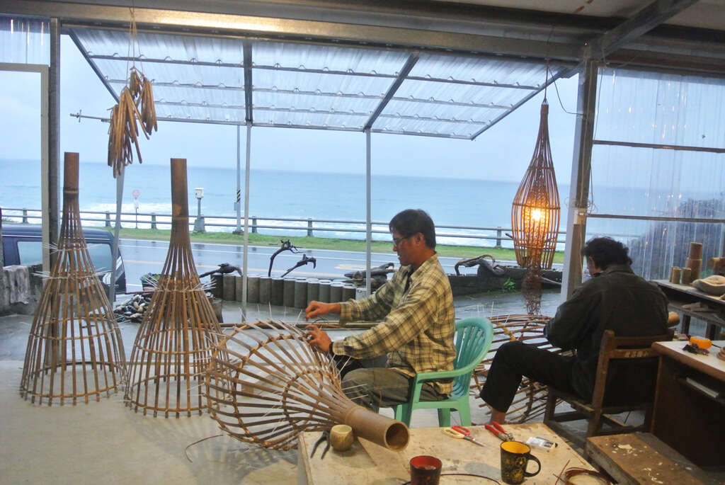 東海岸線上的<光織屋>,透明且半開放的工作室和展演空間,夜晚散發著誘人的竹籐燈光,這裡除了是陳淑燕與噶瑪蘭族的杜瓦克.都耀的創作與展覽空間,也積極推廣在地手藝與自然素材的創意工作坊,成為連結在地手藝、自然生活與藝術交流的平台。