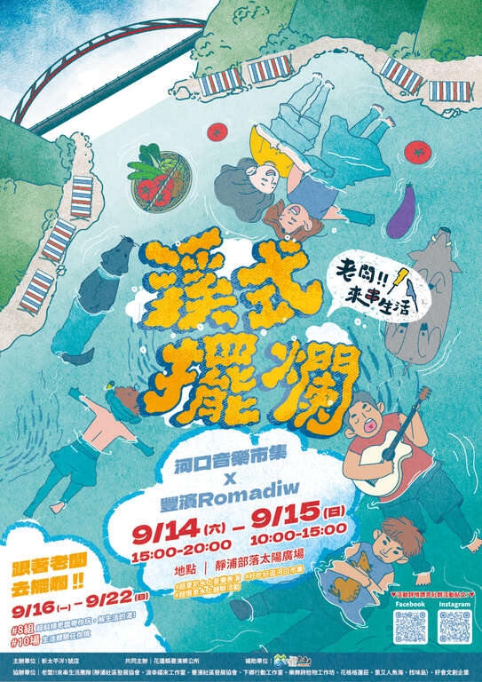 「老闆!!來串生活」。以主題活動的創新玩法,強化地方形象及遊客對於品牌價值的認知。另外,透過系列風格體驗,讓來到雙濱地區旅遊的人們能夠用生活化的方式切入,進一步認識雙濱地區的人文特色。其中包含節慶式活動-河口音樂市集,整合秀姑巒溪流域旅遊資源,以秀姑巒溪上的水上舞台表演及特色市集為活動重要特色,今年 2024 從既有一天的音樂市集活動擴大為二天內容,以強化遊客與秀姑巒溪更多互動的可能,除既有的以文化、生態、生活面相出發的「特色市集」、與「地景展演」外,將各式「親水活動」如膠筏、SUP、獨木舟等及河口淨灘、出海口生態觀察等集結,塑造更為鮮明的「河口印象」。