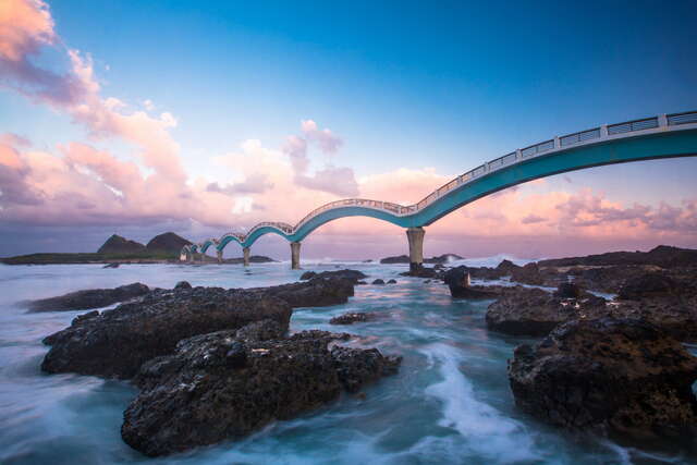 台灣寶島每天的第一道曙光總先灑落在三仙台,當曙光乍現時,也喚醒了沈睡的大地! 三仙台許願島座落於全世界最大也最有能量的太平洋上,溫暖的黑潮自北赤道帶著強大的能量而來,東海岸因而充滿豐盛的生機。 有如巨龍般橫臥在台灣本島與三仙台島間的跨海拱橋,連接起人與自然,使我們更易於探索令人驚艷的島嶼生態系。