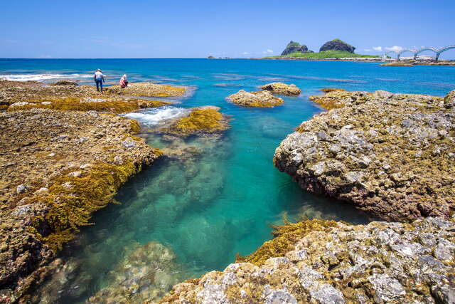 過去想參訪三仙台的遊客只能利用退潮時涉水而過,1987年完成了八拱跨海步橋,波浪造型,宛如一條巨龍伏臥海上,成為東海岸極為著名的地標,來此觀賞日出更是一大享受。