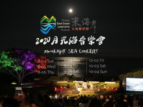 「月光.海音樂會」主要以自然景觀做為舞台背景,藉由月升日落浪起潮退等自然現象的動態展演,具體而微隱喻了大地藝術節想要表達的閒暇哲學與東海岸生活的美學風格。配合大地藝術節及結合在地文創品展售市集,於每月接近滿月之日,搭配東海岸獨有的月光海美景,在依山傍海的大自然空間,欣賞國內外音樂創作人精彩的演出。