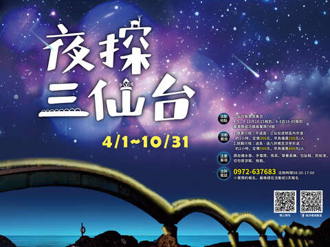 「夜探三仙台」於 2026 年 4 月 1 日至 10 月 31 日登場,以暗空探索為主題,帶領旅人以最友善、不打擾生態的方式,走進三仙台的夜色之中。當海風變得柔軟、月光落在礫石灘上,夜行小生物便悄悄現身,陸蟹探頭覓食、寄居蟹拖著「小套房」四處巡邏,而剛成年的青蛙更用一首首情歌宣告夏夜的到來。跟著在地導覽老師,以「剛剛好」的光線觀察自然,在星空、浪濤與夜間生態的交織下,體驗最浪漫的東海岸風景。