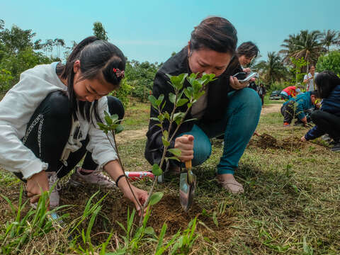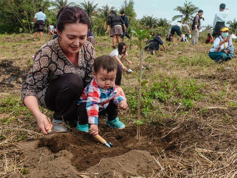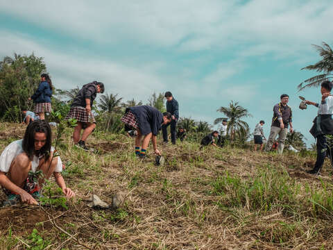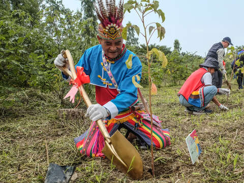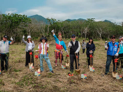 本次活動由東管處與都蘭部落共同攜手合作,並由林務局臺東林管處協助提供苗木,選擇以當地原生樹種為主要種植項目,預計種植毛柿、楓香、茄冬、無患子、光臘樹及石斑木等1,200株。在都蘭部落頭目的祈福下,由參與貴賓、部落居民與都蘭國中小師生攜手種下東海岸希望之苗,讓美化環境與守護土地的信念,跟著樹苗慢慢成長,深根在地。