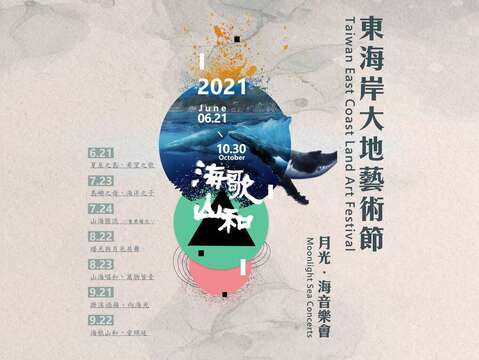 而我們期待透過2021東海岸大地藝節,傳遞東海岸「海歌山和」這樣亙古綿延的療癒力量,並為疫苗普及、國境重新打開的「後疫情時代」作好航向不可知的新世界之準備。