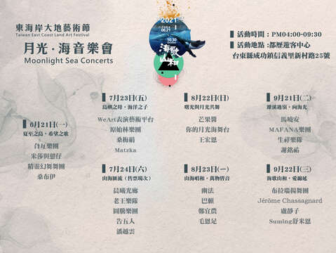 ▌2021月光.海音樂會場次日期與表演名單