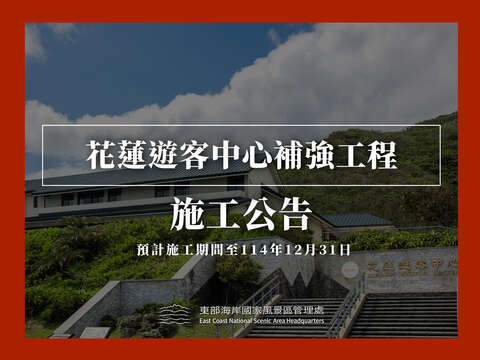 ,施工期間遊客中心全區不開放,請遵守現場相關告示及注意自身安全,造成不便之處敬請見諒。