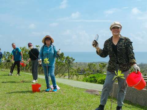 今年植樹節東管處特別與當地信義里合作,邀請里民一起來種樹。