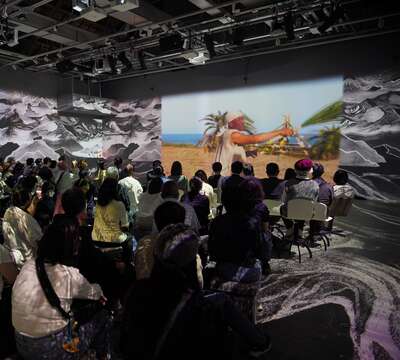由交通部觀光署東部海岸國家風景區管理處(東管處)主辦的「東海岸大地藝術節」,昨(8)日於台北Magic Box魔術方塊數位故事館舉辦全國記者會暨音樂會。活動運用全境式沉浸投影技術,將東海岸壯麗的自然景觀與原住民文化搬上舞台,並邀請金曲歌王桑布伊壓軸演出,現場氣氛熱烈。