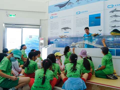 海洋環境教室環境教育包括「永續海鮮鍋」與「鯨聲鯨世」兩大核心課程。「永續海鮮鍋」課程以魚種選購為體驗主軸,帶領學員從日常餐桌認識海洋資源的永續利用。課程介紹臺灣沿海常見魚種與漁法,說明過度捕撈及外來魚種對生態的影響,並引導學員辨識「友善海鮮」與「永續標章」,了解如何在消費選擇中實踐環境友善;此外,課程還結合「鏢旗魚體驗區」,引領學員體驗成功鎮傳統的鏢刺漁法,並了解此獨特漁法如何結合永續智慧與地方文化,透過實地操作,學員能親身感受漁民的智慧與勇氣,並深入了解與海洋的共生關係。「鯨聲鯨世」課程以東海岸豐富的鯨豚資源為主題,結合賞鯨活動與環境教育,內容涵蓋鯨豚生態、物種辨識、聲音溝通及保育行動介紹。透過互動教材與聲音模擬,讓學員了解鯨豚如何以聲音導航、捕食與交流,並以創作「鯨豚守護行動卡」作為課程收尾,培養守護海洋的行動力與責任感