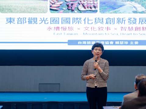 賴瑟珍主任委員以「從山到海,用共好的心,說好花東的故事」為題,提醒業者以消費者視角重新審視花東的品牌價值鏈,並以「共創、共學、共好」的精神彼此協作,挖掘足以讓旅客一秒想到花東的魅力符碼。